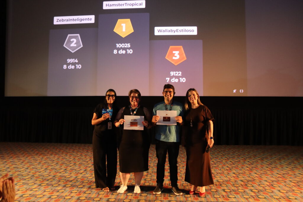 Após a palestra, o encontro seguiu com um momento mais descontraído e interativo: um jogo no Kahoot, com perguntas relacionadas à educação, aprendizagem e cotidiano escolar. De forma leve e divertida, a atividade promoveu engajamento, troca de ideias e muitos sorrisos entre os participantes.