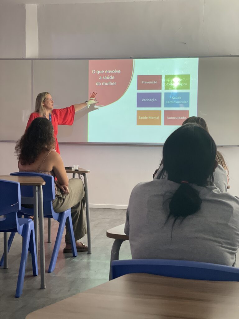 A programação contou com uma palestra sobre a saúde integral da mulher, conduzida por profissionais convidados, que abordaram de forma sensível e informativa aspectos fundamentais da saúde física, mental e emocional.