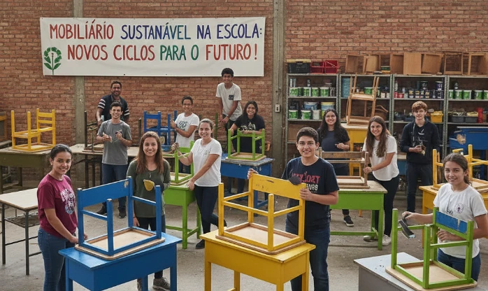 Cadeiras, mesas e outros móveis em bom estado ganham novos usos em diferentes unidades, ampliando o ciclo de vida dos materiais e evitando descartes desnecessários.